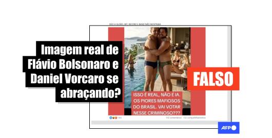 Foto de Flávio Bolsonaro e Vorcaro abraçados foi gerada com inteligência artificial