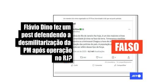 Após megaoperação no RJ, circula post falso atribuído a Flávio Dino com defesa a desmilitarização da PM