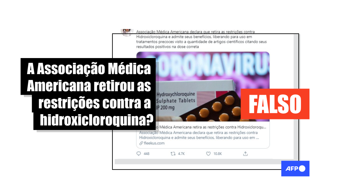 A Associação Médica Americana não passou a recomendar a hidroxicloroquina contra a covid-19