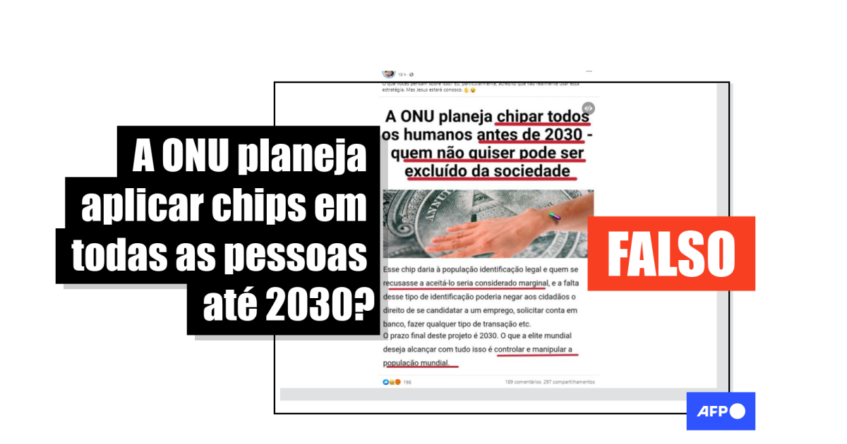 Os artigos viralizados afirmam: “A ONU prevê que até o ano de 2030 cada pessoa terá uma identificação biométrica, que será válida em todo o mundo”.