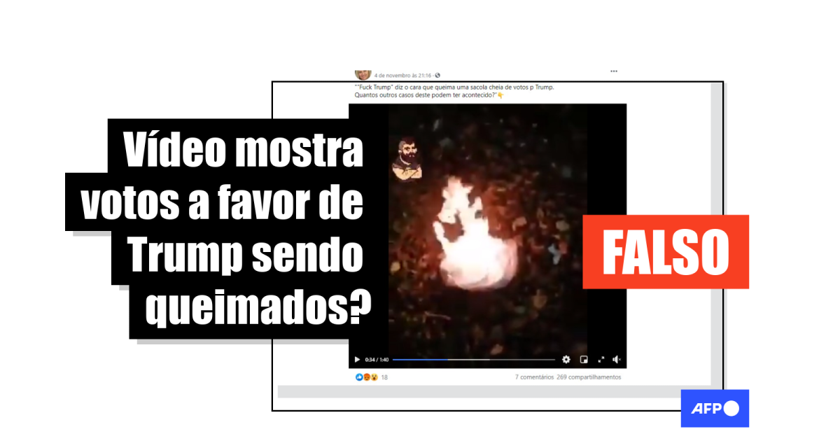 “‘Fuck Trump’ diz o cara que queima uma sacola cheia de votos p Trump. Quantos outros casos deste podem ter acontecido?”, diz uma das publicações no Facebook, junto a uma gravação de uma pessoa queimando documentos enquanto insulta o presidente norte-americano.