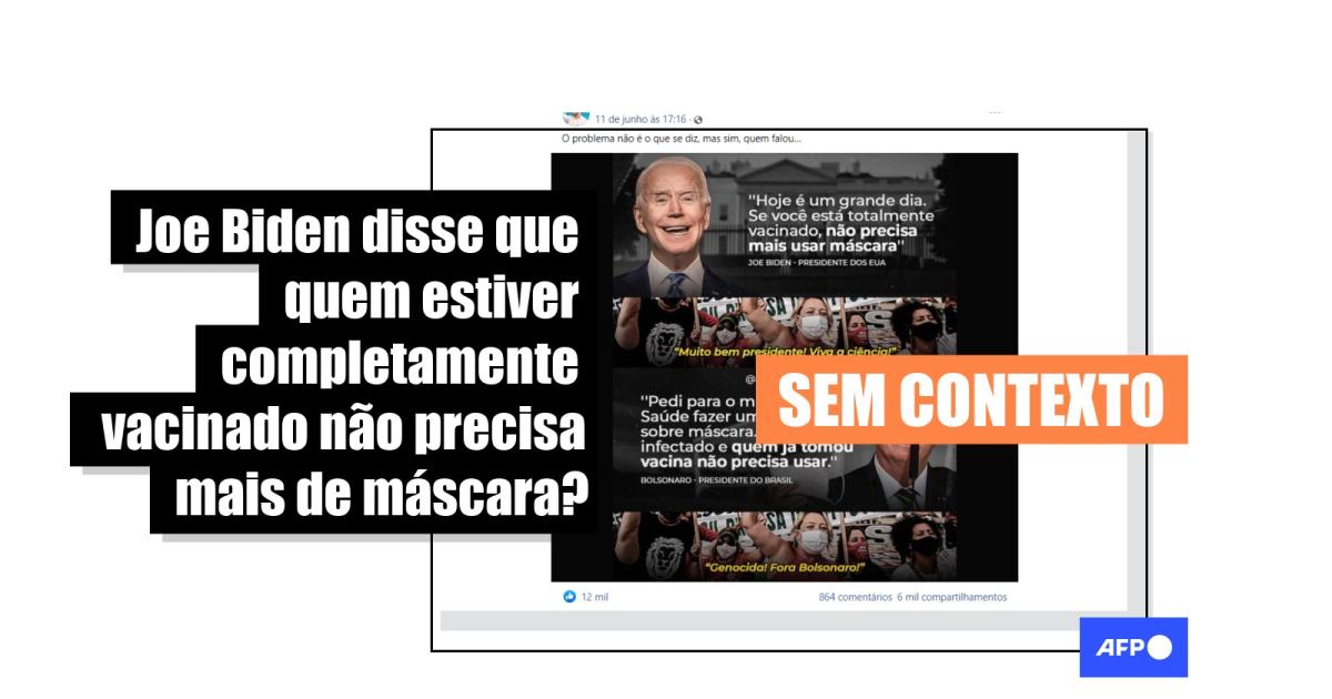 Em tradução livre para o português, Biden diz: “Hoje é um grande dia para a América em nossa longa batalha contra o coronavírus. Há algumas horas, os Centros de Controle e Prevenção de Doenças - os CDC - anunciaram que não estão mais recomendando que as pessoas totalmente vacinadas precisem usar máscaras. Esta recomendação é válida para lugares fechados ou abertos”.