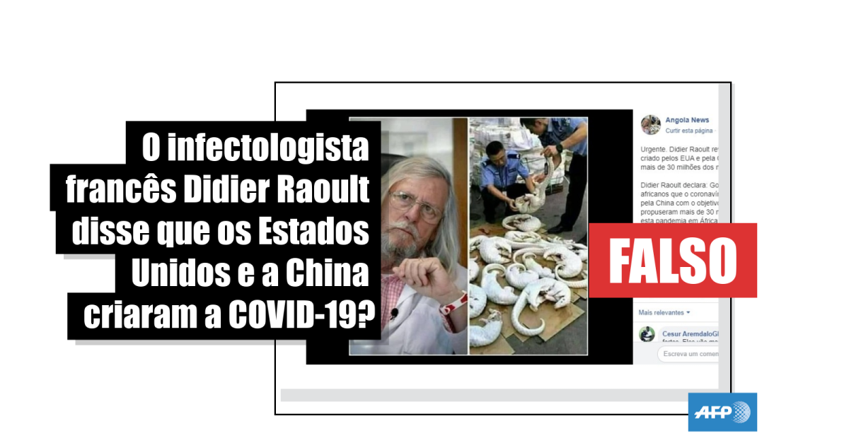 Didier Raoult não disse que a COVID-19 foi criada pela China e pelos EUA para “destruir” a África