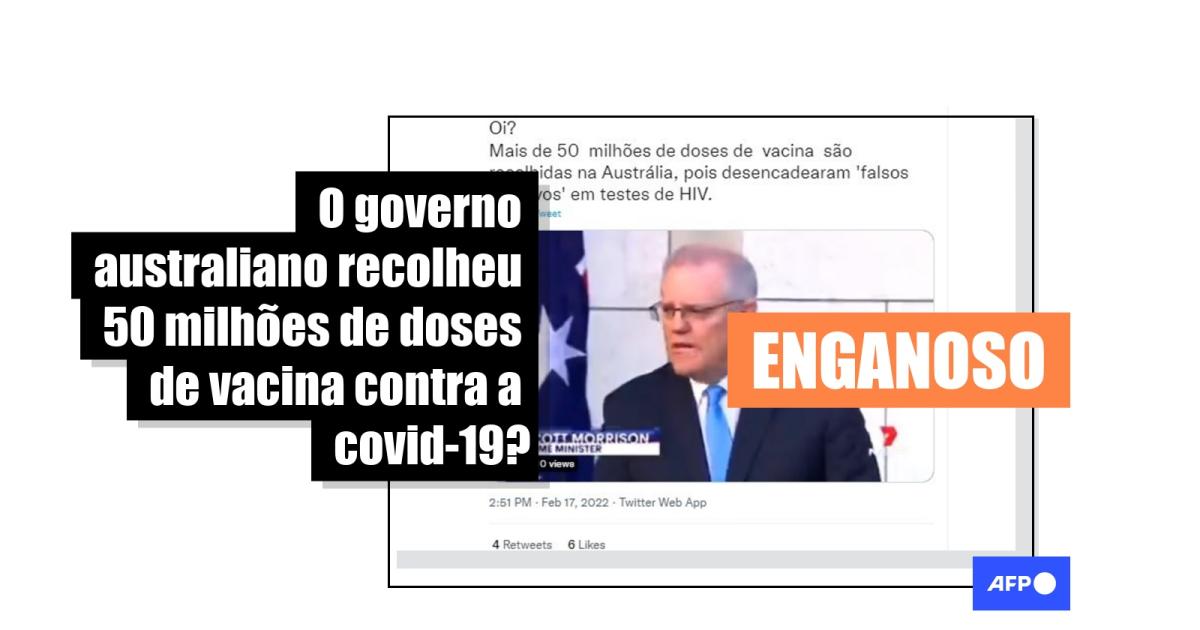 “Mais de 50 milhões de doses de vacina são recolhidas na Austrália, pois desencadearam 'falsos positivos' em testes de HIV”, dizem as publicações no Facebook (1, 2) e no Twitter (1, 2).