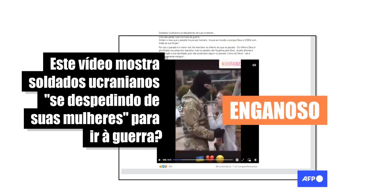 “Soldados Ucrânianos se despedindo de suas mulheres. Uma das partes mais horríveis da guerra”, dizem publicações compartilhadas no Facebook, no Instagram e no Twitter.