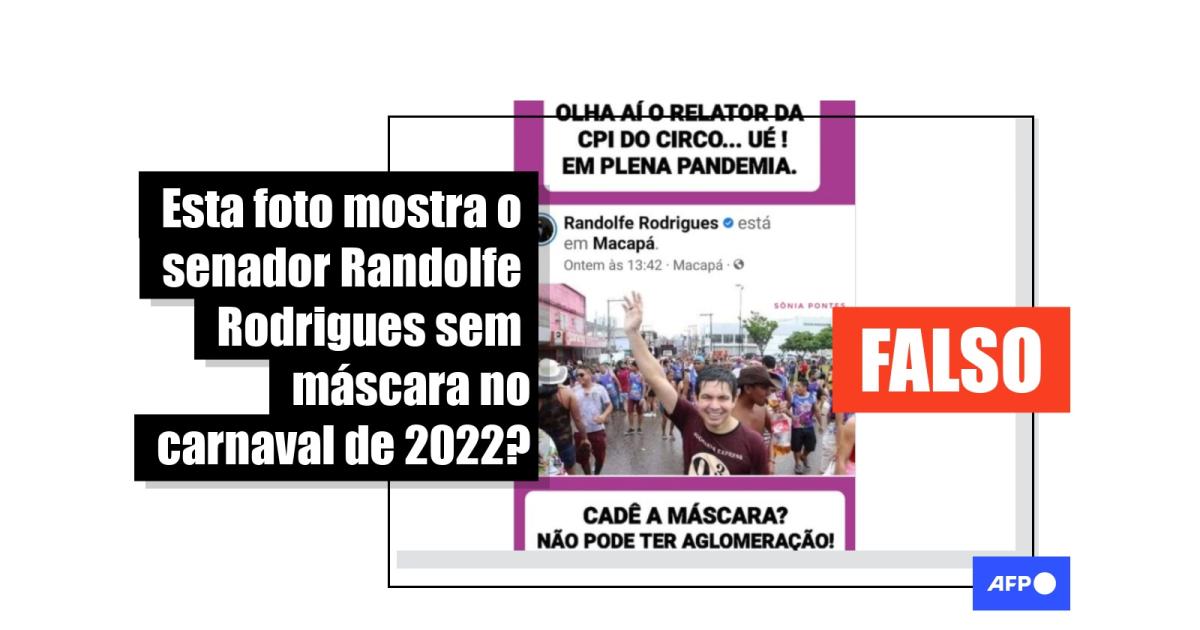 Uma busca na conta oficial de Randolfe Rodrigues no Facebook mostra que uma foto muito semelhante à viralizada foi publicada pelo senador em 5 de março de 2019, terça-feira de carnaval daquele ano.