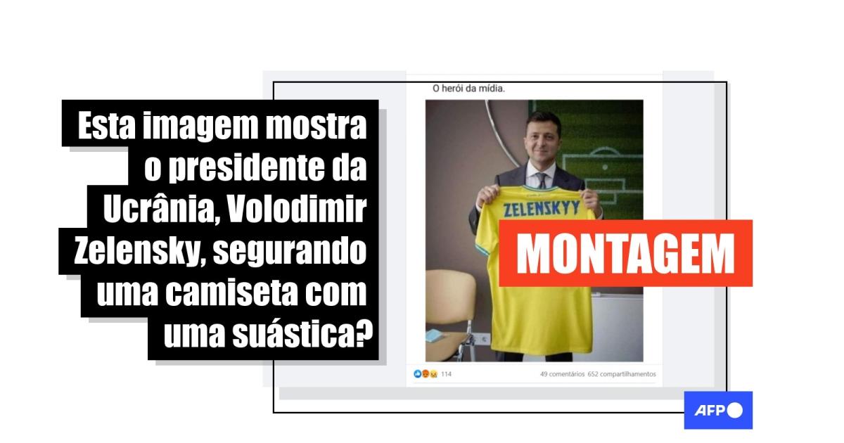 A foto do presidente ucraniano segurando uma camiseta com uma suástica foi manipulada