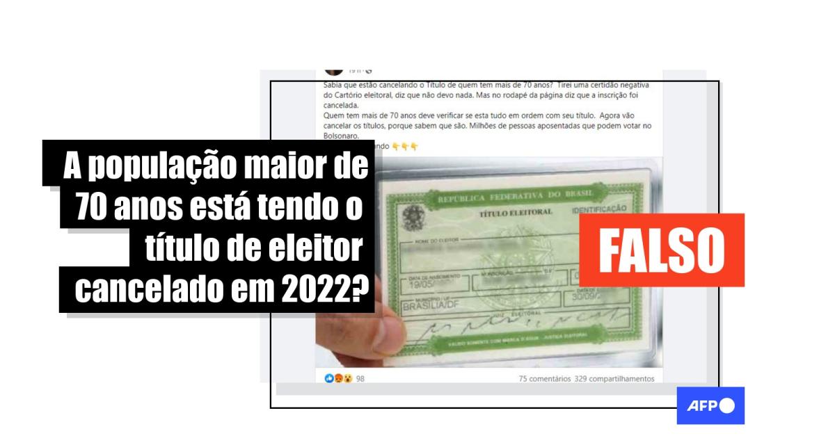 “Estão cancelando Título de quem tem mais de 70 anos!? Certidão negativa Cartório eleitoral, diz que não devo nada. Mas no rodapé da pág. diz ‘inscrição cancelada’!”, dizem mensagens que circulam no WhatsApp e que foram enviadas ao AFP Checamos para verificação.