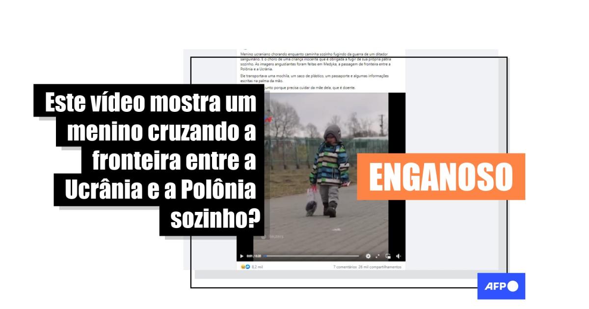 “Menino ucraniano chorando enquanto caminha sozinho fugindo da guerra de um ditador sanguinário. É o choro de uma criança inocente que é obrigada a fugir de sua própria pátria sozinho”, dizem publicações compartilhadas no Facebook.