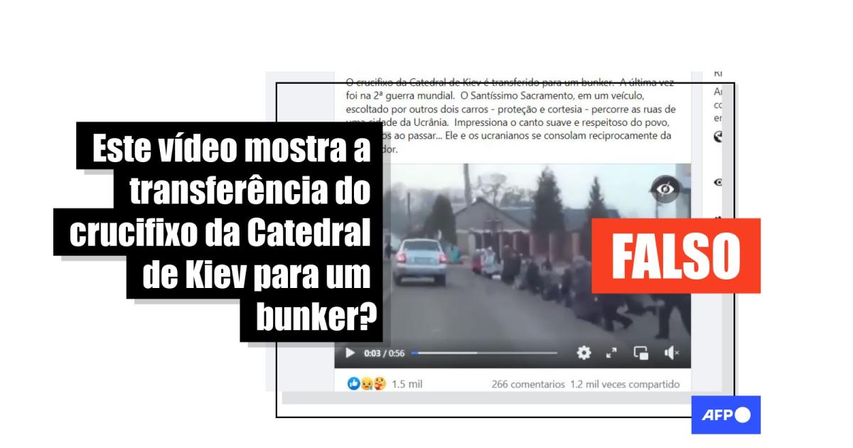 “O crucifixo da Catedral de Kiev é transferido para um bunker. A última vez foi na 2ª guerra mundial. O Santíssimo Sacramento, em um veículo, escoltado por outros dois carros - proteção e cortesia - percorre as ruas de uma cidade da Ucrânia. Impressiona o canto suave e respeitoso do povo, de joelhos ao passar…”, diz uma das publicações compartilhadas no Facebook (1, 2), no Instagram (1, 2) e no Twitter.