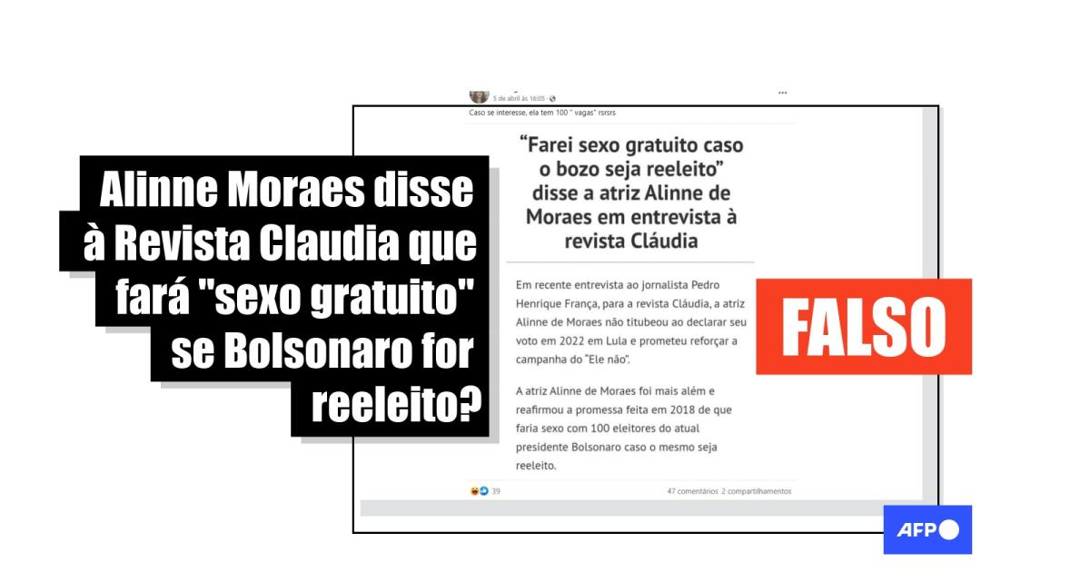 Paula Jacob, editora-chefe da Revista Claudia e responsável por coordenar e editar todo o conteúdo produzido pela equipe, também disse à AFP que em nenhum momento do diálogo “ela [Alinne Moraes] falou que faria sexo gratuito caso Bolsonaro fosse eleito”.