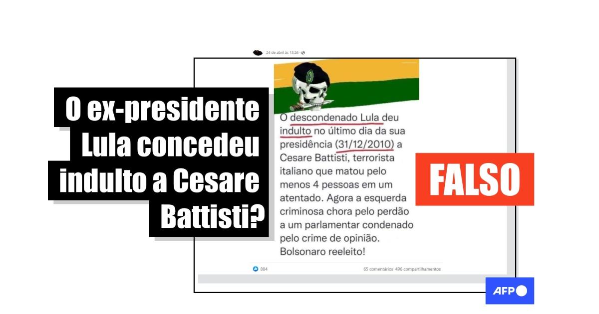 Diferentemente do que alegam as publicações virais, Lula não deu um indulto a Battisti, na época condenado à prisão pela justiça italiana por seu envolvimento em quatro homicídios.