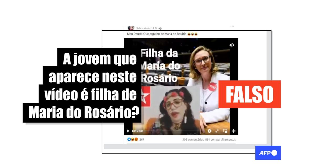 “Meu Deus!!! Que orgulho de Maria do Rosário”, diz uma das publicações compartilhadas no Facebook com dois vídeos compilados, a foto da deputada, a frase “Filha da Maria do Rosário” e a estrela do PT. Conteúdo semelhante circula no Instagram, no Twitter, no YouTube e no TikTok.