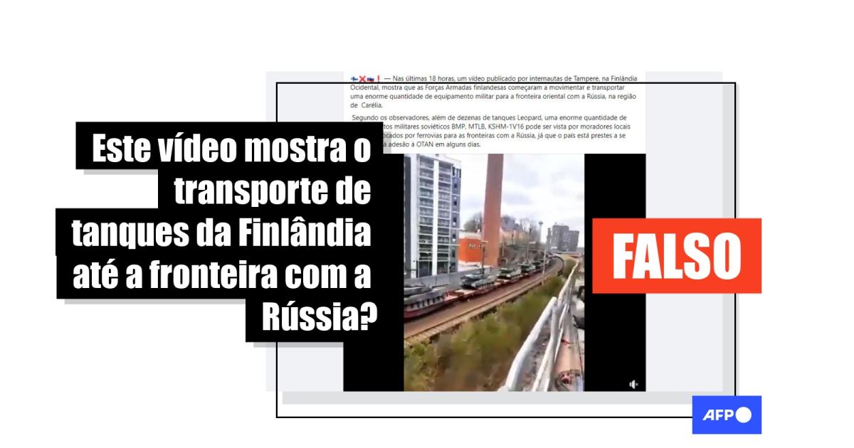 “Nas últimas 18 horas, um vídeo publicado por internautas de Tampere, na Finlândia Ocidental, mostra que as Forças Armadas finlandesas começaram a movimentar e transportar uma enorme quantidade de equipamento militar para a fronteira oriental com a Rússia”, diz uma das publicações no Facebook. Conteúdo similar circulou no Twitter e no TikTok.