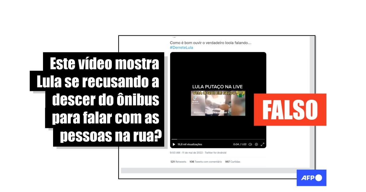 Nos minutos anteriores, ao contrário do alegado nas redes, Hoffmann justamente dizia que o ex-presidente havia descido “para ficar junto com o motorista e cumprimentar o pessoal”. Em seguida, uma pessoa que não é vista na imagem completa: “na porta do ônibus”.