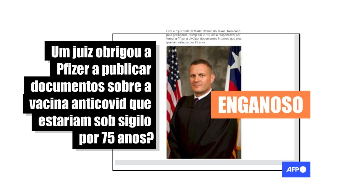 “Este Juíz merece todo aplauso e respeito. Juíz federal Mark Pittman, obrigou a Pfizer a publicar 80.000 páginas de documentos internos que queriam selar por 75 anos. Temos provas do crime mundial”, dizem publicações no Twitter (1, 2), Facebook (1, 2) e no Instagram.