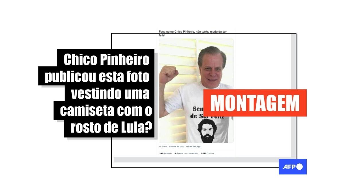 É uma montagem a foto de Chico Pinheiro vestindo uma camisa com o rosto de Lula