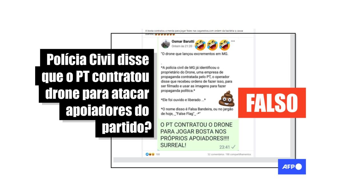 Polícia Civil de Minas Gerais não confirmou que o PT contratou drone que atacou militantes