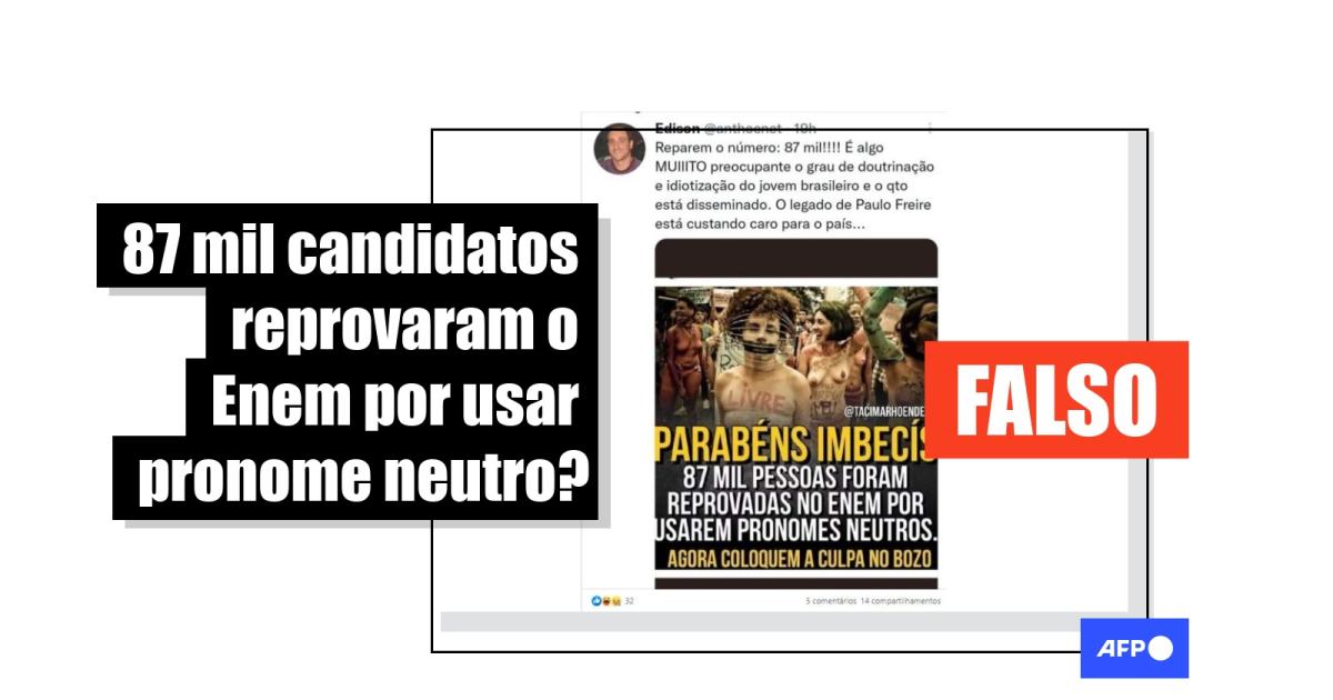 Em 2 de abril de 2021, circulou no Twitter postagens que afirmavam que 87 mil alunos teriam zerado a redação do Enem por usarem pronomes neutros.