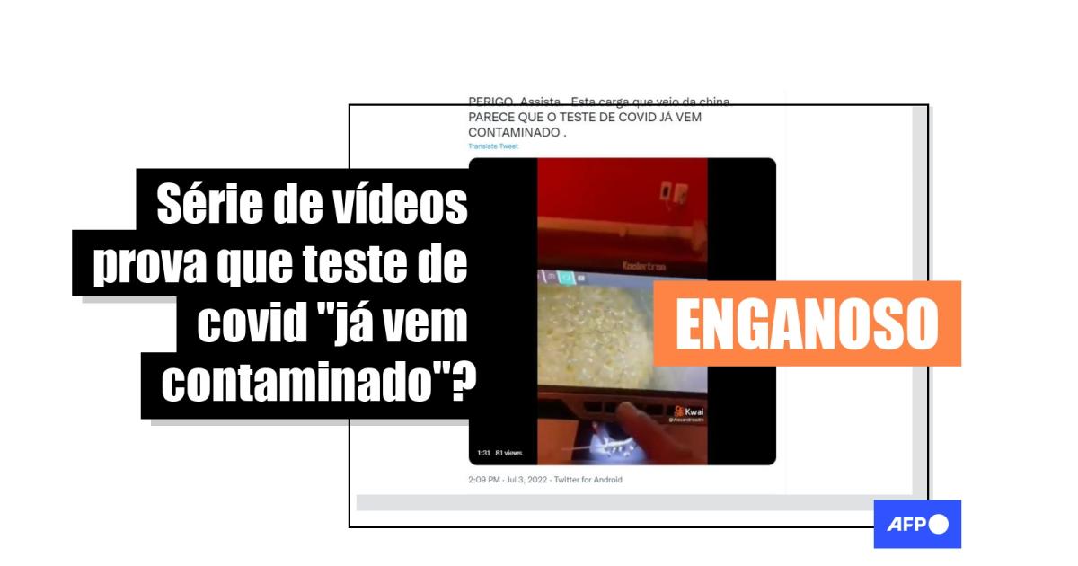 “O Teste de Covid contaminado vindo da China”, “parece que o teste de covid já vem contaminado”, destacam usuários que compartilham o compilado no Facebook e no Twitter. O conteúdo também foi enviado ao WhatsApp do AFP Checamos para verificação.