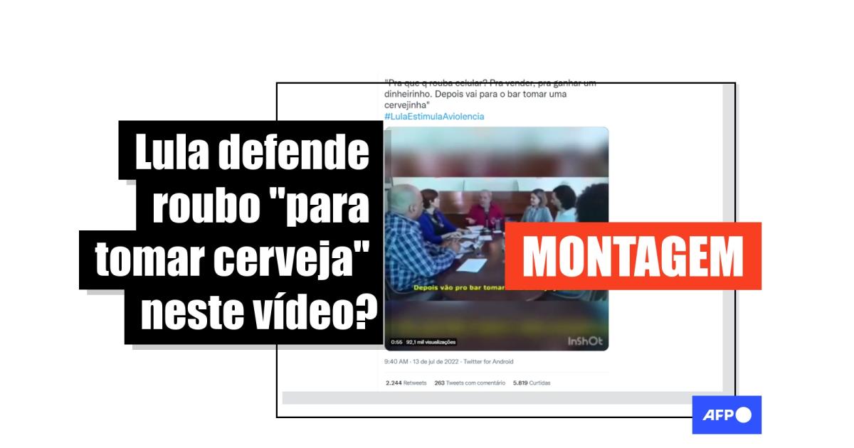 É montagem o vídeo de Lula dizendo que ladrões roubam celulares para “tomar uma cerveja”