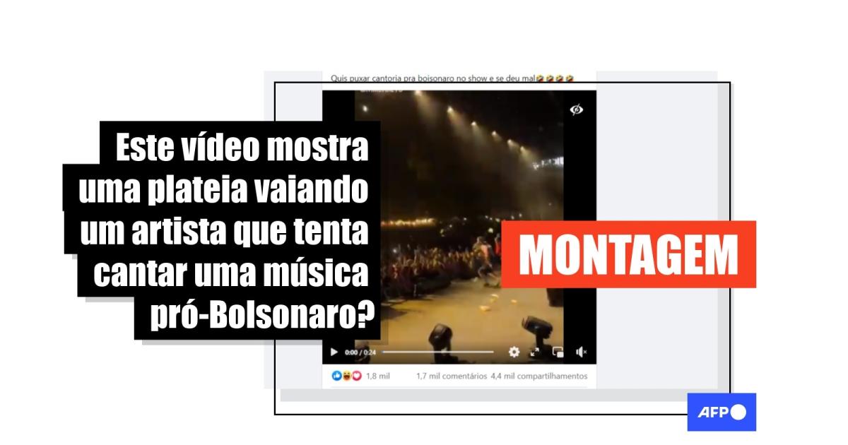 “Quis puxar cantoria pra boisonaro no show e se deu mal”, diz um dos vídeos compartilhados no Facebook. O conteúdo circula também no Twitter, TikTok, Kwai e Helo.