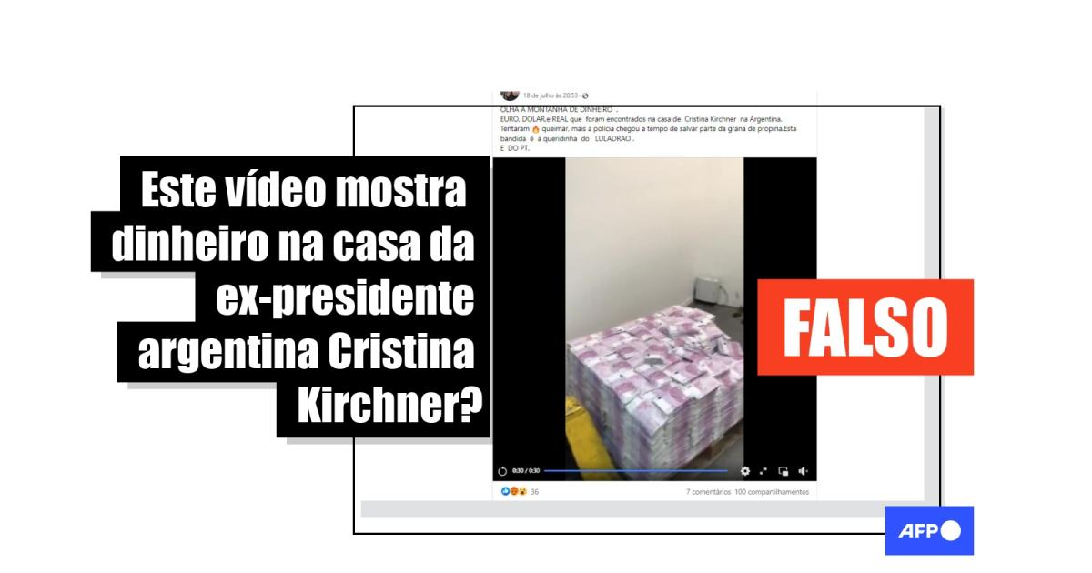 Vídeo de pilha de dinheiro não mostra apreensão na casa de Cristina Kirchner; é uma escultura