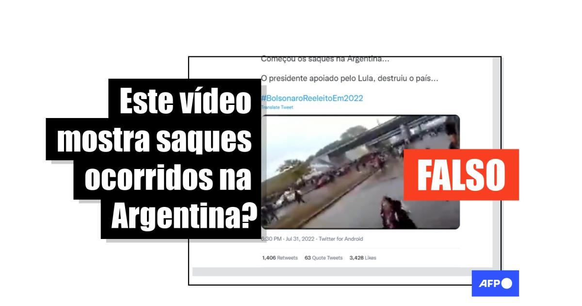 “Começou os saques na Argentina… O presidente apoiado pelo Lula, destruiu o país…”, diz uma das publicações compartilhadas no Twitter (1, 2), Facebook, TikTok e Kwai.