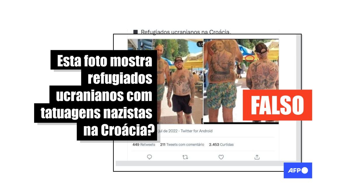 Os homens com tatuagens nazistas fotografados em uma praia são húngaros, não refugiados ucranianos