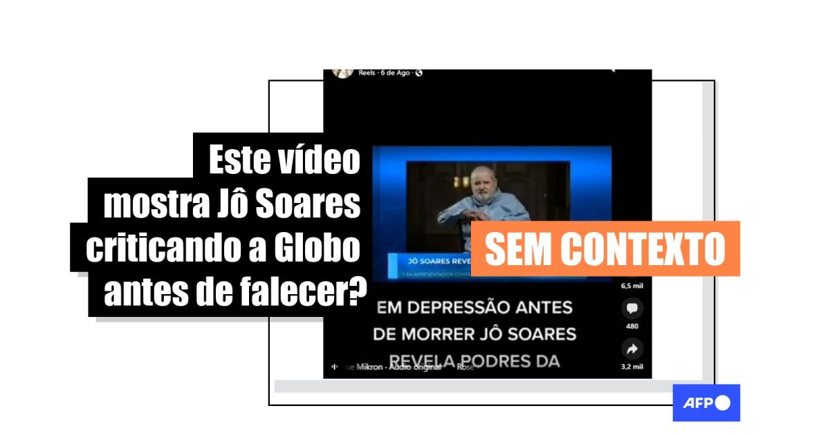 A publicação traz várias fotos recentes do humorista junto a um áudio no qual ele diz que a emissora estaria vetando comerciais com artistas e comunicadores que decidem deixar o canal. Sobreposto ao vídeo compartilhado no Facebook (1, 2), Kwai (1, 2) e TikTok, lê-se: “Em depressão antes de morrer Jô Soares revela podres da Rede Globo”.