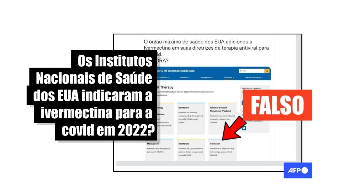 À AFP, os Institutos Nacionais de Saúde dos Estados Unidos confirmaram em 6 de setembro de 2022 que a inclusão da ivermectina à seção de diretrizes de tratamento não é nova, e acrescentaram: “É importante ressaltar que o painel de diretrizes de tratamento para a covid-19 contraindica o uso da ivermectina para o tratamento da covid-19”.