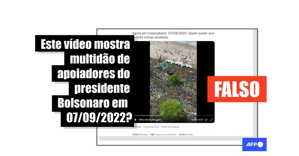 O presidente Jair Bolsonaro esteve presente nas manifestações realizadas em Copacabana em 7 de setembro de 2022 e a AFP cobriu o evento.