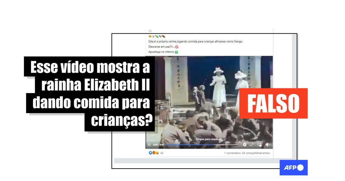 “‘Quando vc sabe, vc sabe’!Esta é a própria rainha jogando comida para crianças africanas como frango! Descanse em paz?!!....” , critica um usuário nas redes, anexando uma sequência de menos de um minuto em que aparecem duas mulheres jogando objetos não visíveis a um grupo de pessoas, que se abaixam para pegá-los no chão.