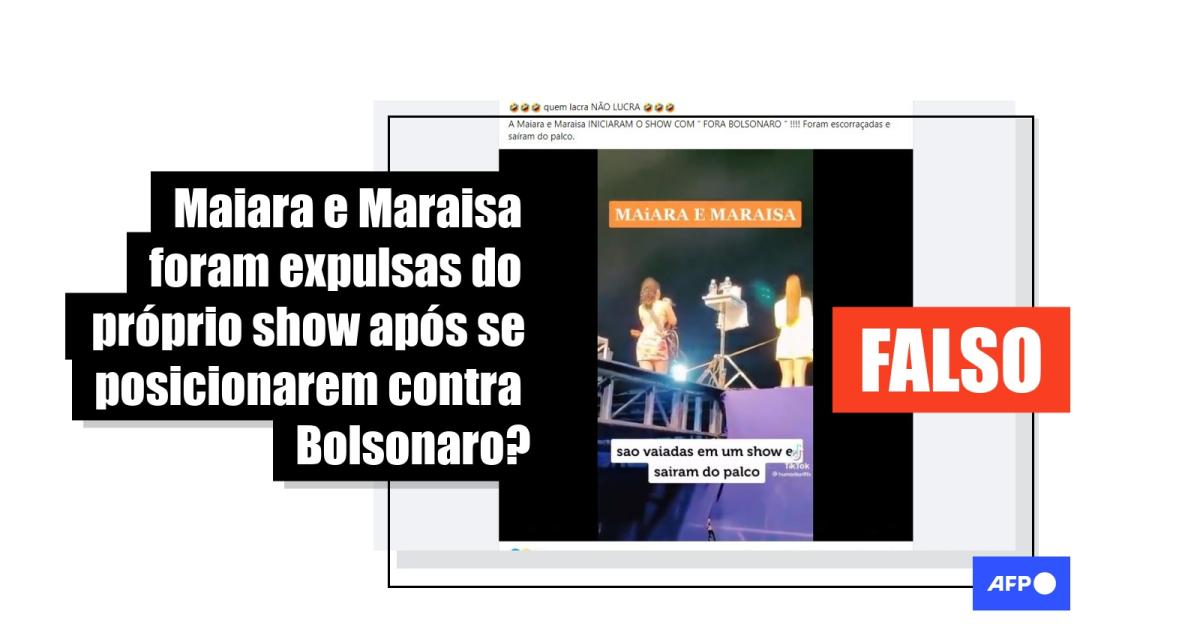 “MAIARA E MARAISA... começaram o show com fora BOLSONARO... foram vaiadas e abandonaram o palco!!! MAIS DUAS LACRADORAS SE FERRANDO... lindo de se ver!”, diz a legenda de um vídeo compartilhado no Facebook, TikTok, Instagram e Twitter.