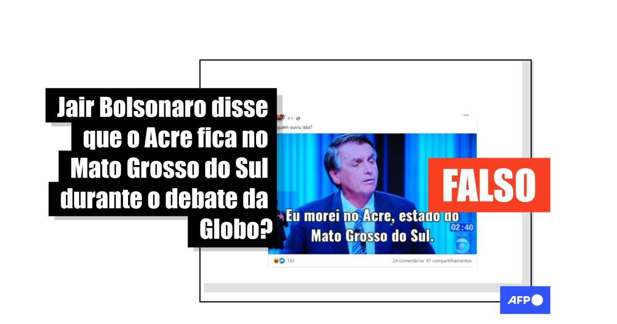 “Alguém ouviu isso?”, diz uma das publicações que circulam no Facebook (1, 2) com uma imagem de Bolsonaro no debate, acompanhada de um texto sobreposto onde se lê: “Eu morei no Acre, estado do Mato Grosso do Sul”. Versões semelhantes também são compartilhadas no Twitter e TikTok (1, 2).