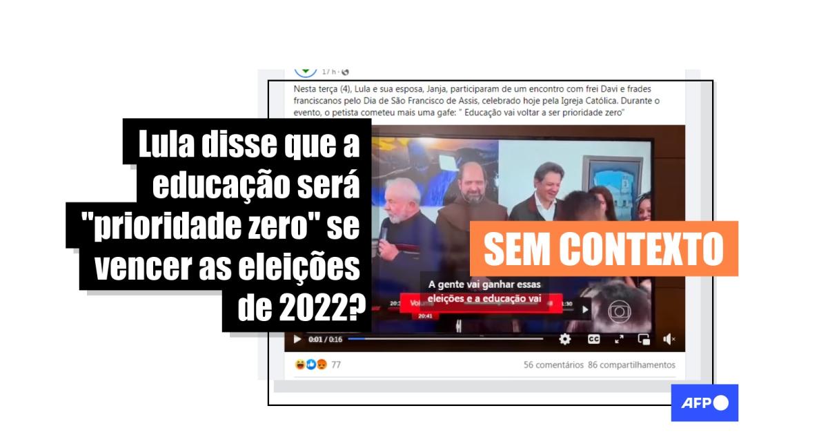 “Nesta terça (4), Lula e sua esposa, Janja, participaram de um encontro com frei Davi e frades franciscanos pelo Dia de São Francisco de Assis, celebrado hoje pela Igreja Católica. Durante o evento, o petista cometeu mais uma gafe: ‘Educação vai voltar a ser prioridade zero’", diz uma das publicações compartilhadas no Facebook.