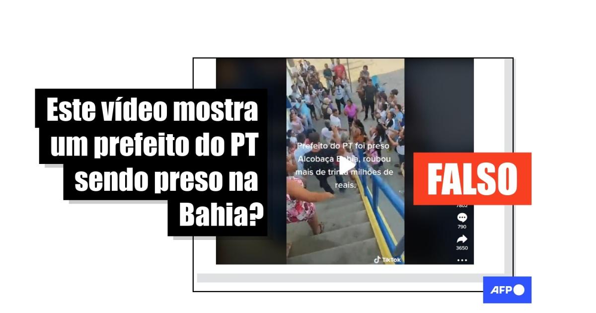 “Esse é o PTPrefeito de Alcobaça Bahia, foi preso por roubar 30 milhões, esse é o PT” diz uma das publicações que circulam no Facebook, TikTok, YouTube, Telegram e Twitter.