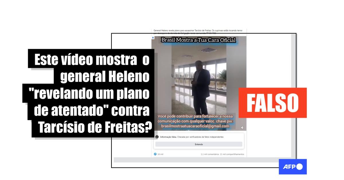 “General Heleno revela plano para assassinar Tarcísio de Freitas. Os cupinxas estão tocando terror por desespero da derrota da Coligação narco-comunista PT CV PCC’”, diz uma das publicações que compartilham o vídeo no Facebook, Twitter e TikTok.