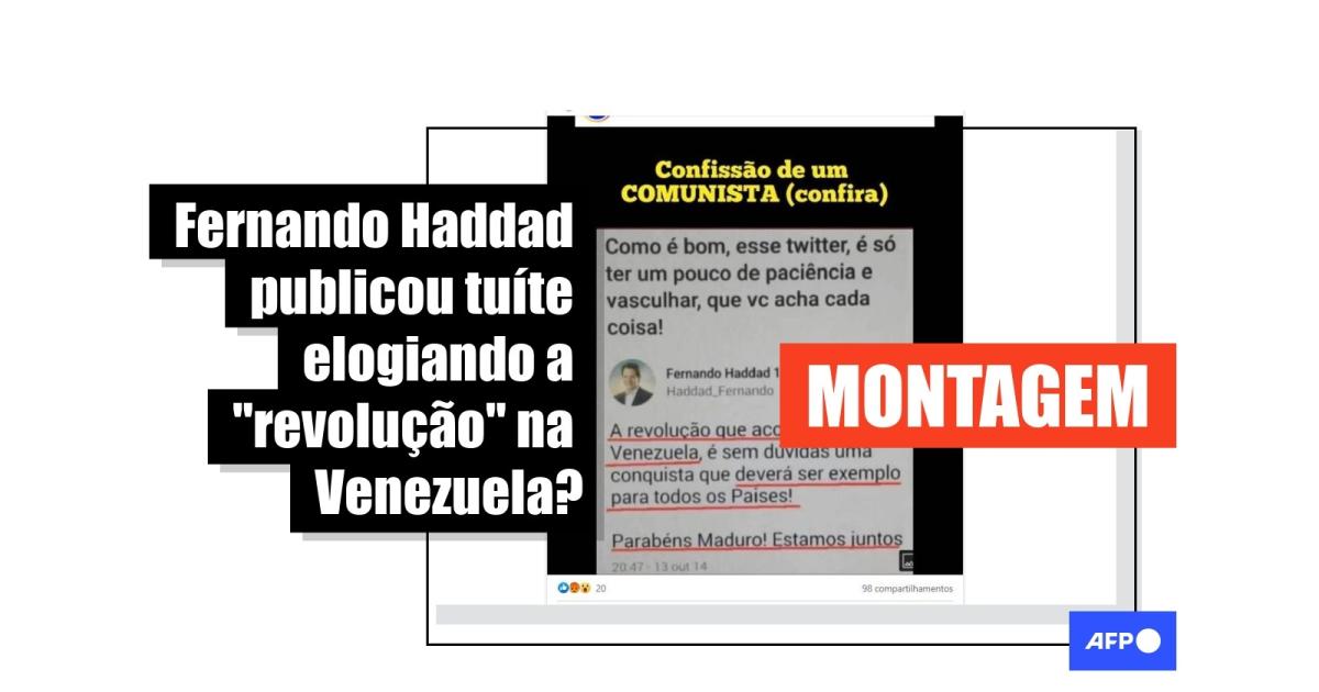 A mensagem também tem erros de português, ao separar o sujeito do verbo com vírgula (“A revolução que acontece na Venezuela, é”) e escrever a palavra países sem o acento agudo, o que destoa da norma habitualmente utilizada por Haddad na rede social.