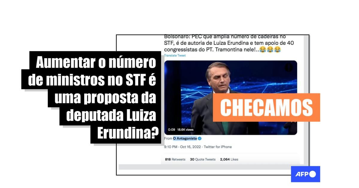 "Bolsonaro: PEC que amplia número de cadeiras no STF, é de autoria de Luiza Erundina e tem apoio de 40 congressistas do PT. Tramontina nele!", diz uma das publicações compartilhadas no Twitter, no Facebook e no Kwai.