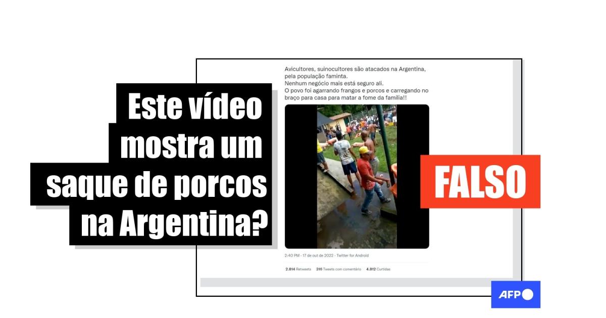 Mas o vídeo do saque a criadouros de porcos não foi gravado na Argentina.