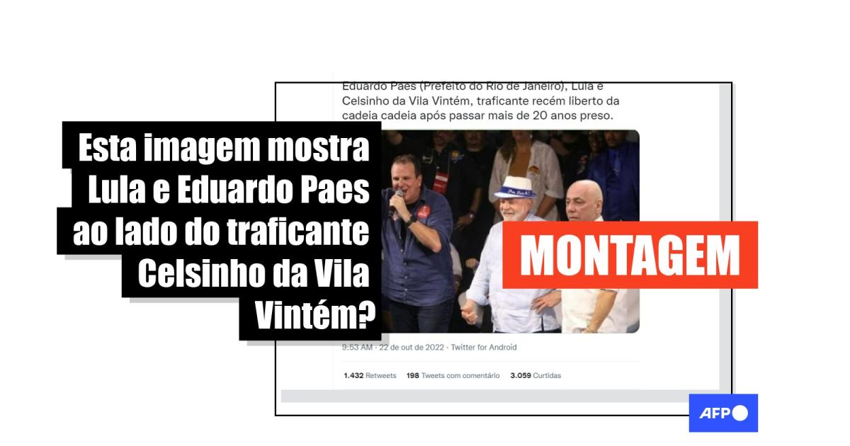 “Eduardo Paes (Prefeito do Rio de Janeiro), Lula e Celsinho da Vila Vintém, traficante recém liberto da cadeia após passar mais de 20 anos preso”, diz uma das publicações que circulam no Twitter, no Instagram e no Facebook.