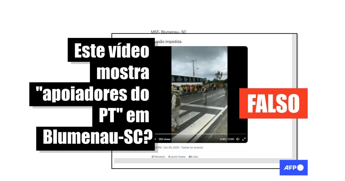 “Aqui em Blumenau veio muitos ônibus do pessoal do PT, com a bandeira do PT, e acamparam lá em cima, em Cano do Progresso. Segundo informações do Exército daqui, que passou para o povo daqui, é que eles estão esperando o Lula ganhar para invadir os sítios por lá”, diz o narrador do vídeo compartilhado no Twitter e no Facebook.