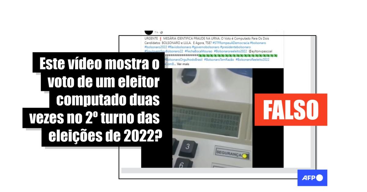 Na sequência, uma mulher filma o equipamento chamado terminal do mesário e diz que o voto do eleitor que teria acabado de ir à urna foi computado duas vezes, uma para Luiz Inácio Lula da Silva (PT) e outra para o presidente Jair Bolsonaro (PL). O conteúdo apresenta como prova a mudança nos números da primeira e da segunda linhas abaixo do relógio.