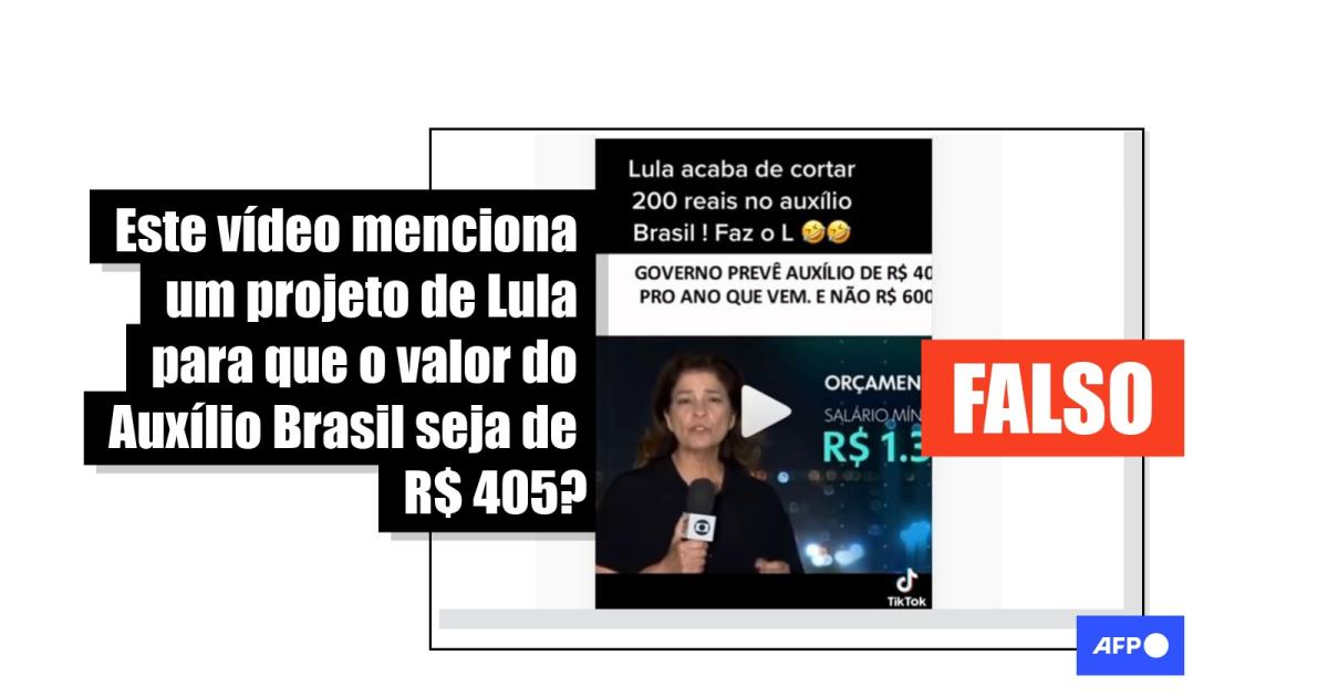 Ao assistir a íntegra da reportagem, fica claro que a matéria do JN fala sobre o Projeto de Lei Orçamentária Anual enviado pelo governo do presidente Bolsonaro ao Congresso Nacional para o ano de 2023. Na proposta, o Auxílio Brasil sofreria uma redução de R$ 195, passando para R$ 405.