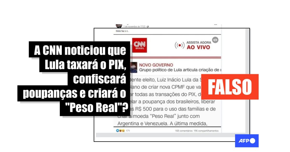 CNN não noticiou que Lula tributará o PIX, congelará poupanças e criará o “Peso Real”