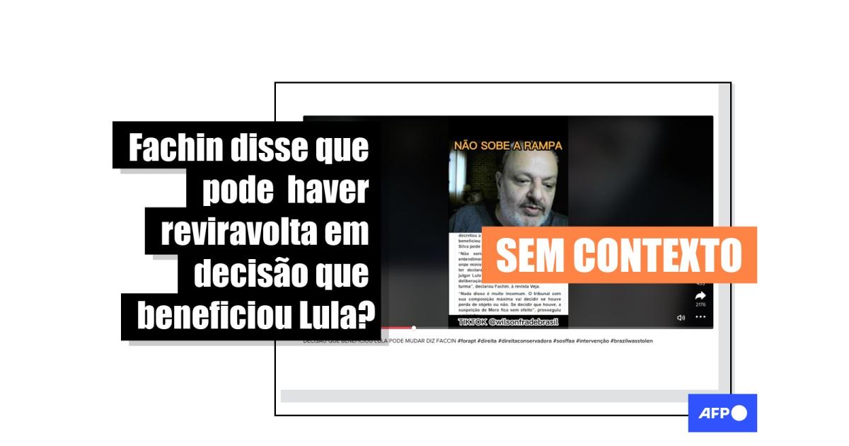 Em abril de 2021 o ministro do Supremo Tribunal Federal (STF) Edson Fachin afirmou em entrevista que a decisão que beneficiava o então ex-mandatário Luiz Inácio Lula da Silva (PT), ao anular suas condenações, poderia ser revista. Mas a declaração é considerada atual em um vídeo compartilhado mais de 2,5 mil vezes desde 11 de novembro de 2022 nas redes sociais. Não há, contudo, nenhuma notícia recente sobre uma "possível reviravolta" no caso. A assessoria do STF disse à AFP que o processo que envolvia o presidente eleito foi encerrado e que não há, no momento, julgamento previsto sobre o assunto.