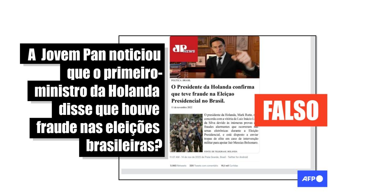 A Jovem Pan não noticiou que o primeiro-ministro da Holanda “confirmou” fraude eleitoral no Brasil