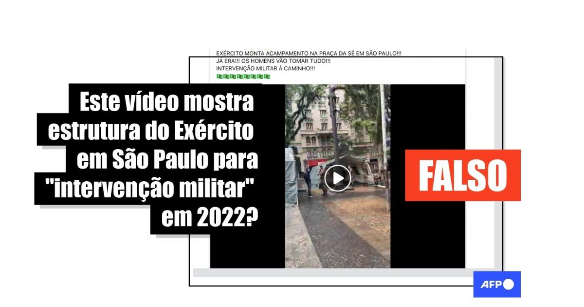 “AGORA!!! EXÉRCITO MONTA ACAMPAMENTO NA PRAÇA DA SÉ EM SÃO PAULO!!! JÁ ERA!!! OS HOMENS VÃO TOMAR TUDO!!! INTERVENÇÃO MILITAR À CAMINHO!!!”, diz uma das publicações que compartilham gravações no Facebook (1, 2, 3), Twitter (1, 2, 3), Kwai, TikTok e YouTube.