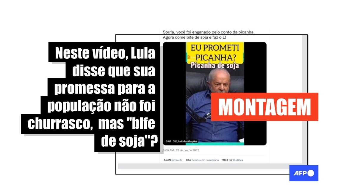 No vídeo, compartilhado também por outros usuários no Instagram, no TikTok e no Twitter e enviado ao WhatsApp do AFP Checamos para verificação, Lula aparece dizendo: “Na verdade eu não estou prometendo churrasco (...) A gente vai voltar a recuperar a economia desse país para que o povo possa… Pode comer um bife de soja, um pastel de caju, qualquer coisa”.